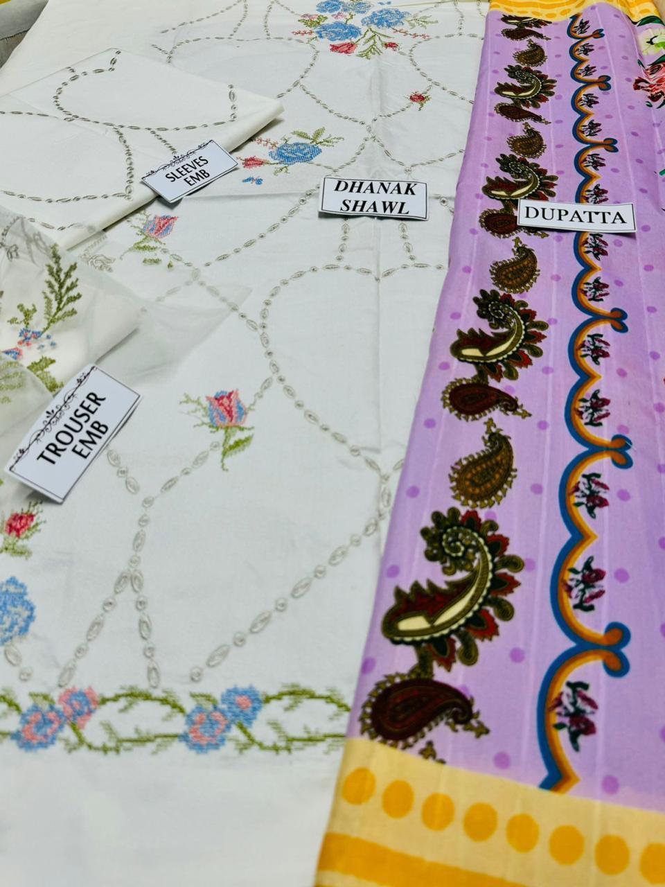 3 Pcs Women's Unstitched Embroidered Suit